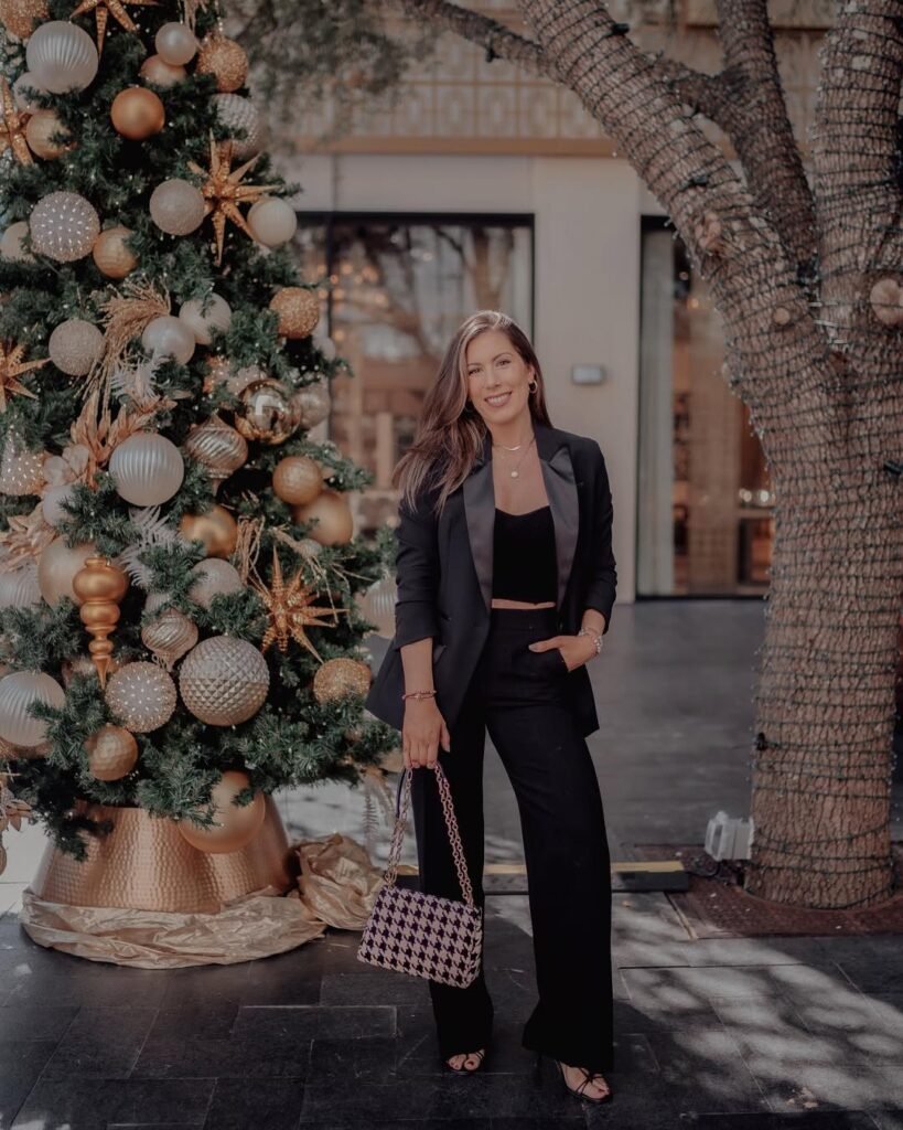 The Christmas glam dress code means dressing in sparkly, elegant pieces like sequins, satin, or velvet — think festive and eye-catching!