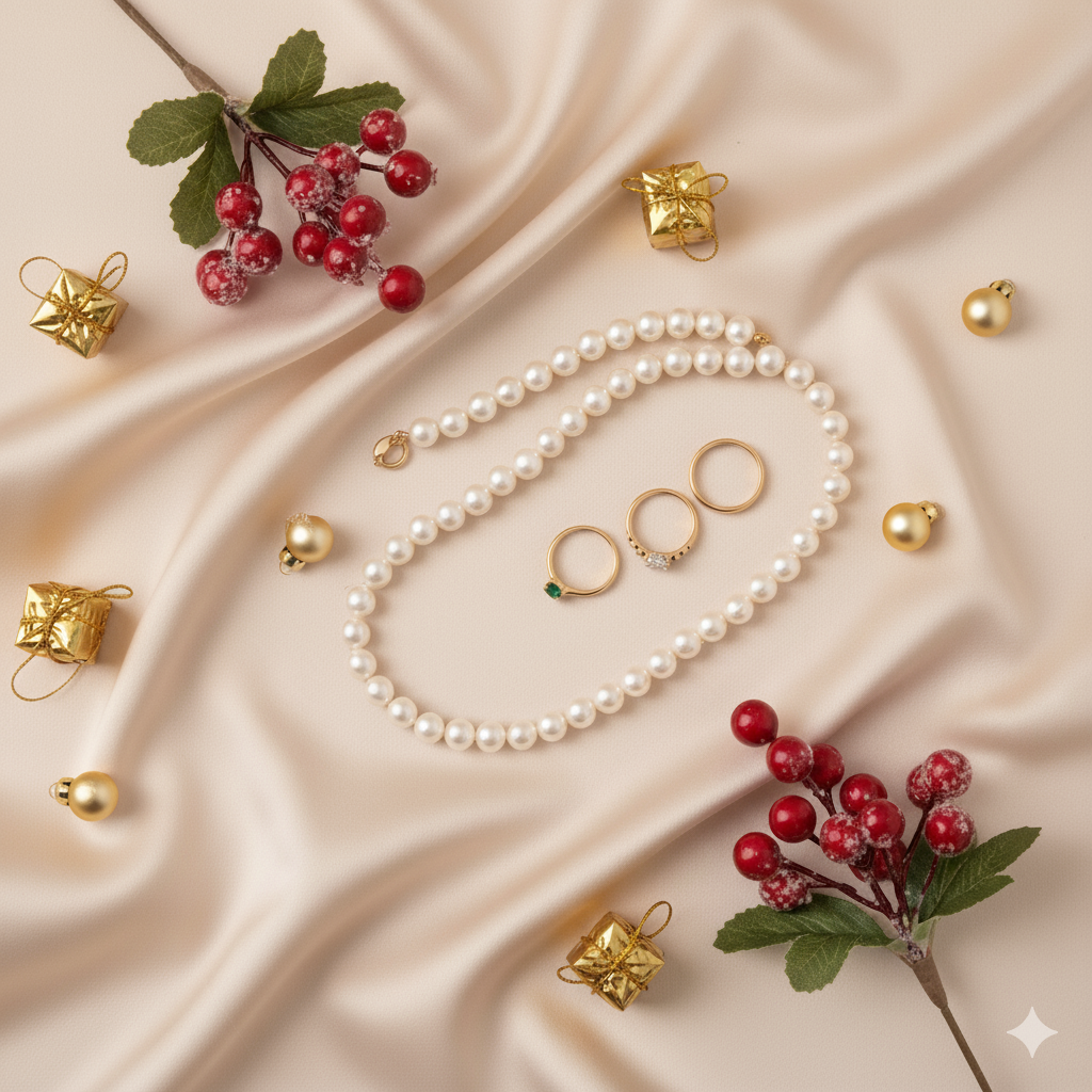 Accessories define the mood of soft glam. In 2025, pearls, gold hoops, and delicate chains take center stage. They add refinement without overpowering your outfit, perfectly complementing the soft textures and warm tones of holiday wear.