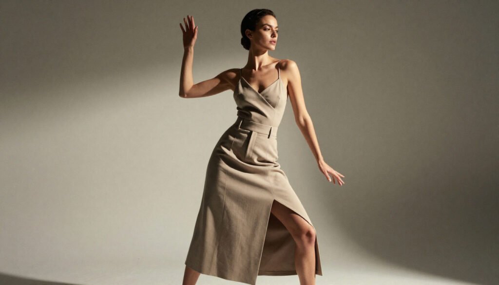 Neutral tones like cream, taupe, grey, navy, and chocolate create endless outfit combinations while maintaining a polished appearance. Midi skirts in wool, satin, or fine cotton add softness and femininity, especially when paired with structured tops or cashmere knits. These pieces move gracefully, creating a quiet elegance with every step.