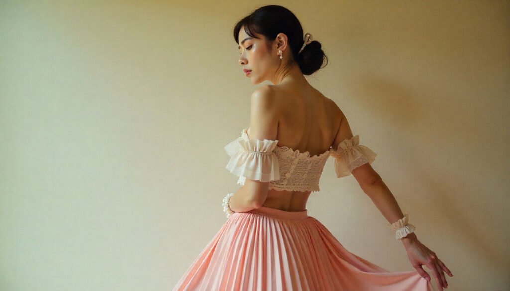 Coquette outfits in 2026 are defined by graceful, body-loving silhouettes that flow rather than restrict. Think corset-inspired tops, wrap skirts, puff sleeves, slip dresses, and softly cinched waists. These shapes highlight femininity without forcing it, allowing movement, comfort, and quiet confidence to coexist.