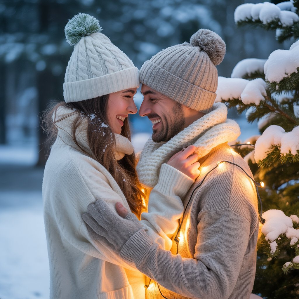 Make Christmas special as a couple by wearing matching festive outfits, planning cozy date nights, and capturing magical holiday photos together.