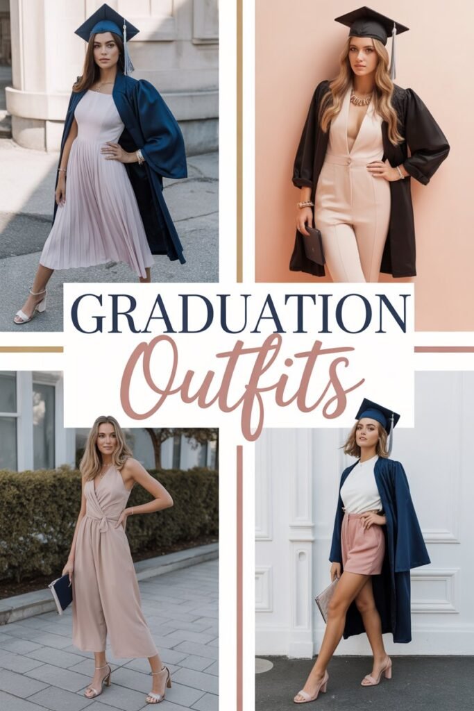 Elegant dresses, tailored jumpsuits, and cohesive accessories create stylish, camera-ready looks perfect for graduation day.