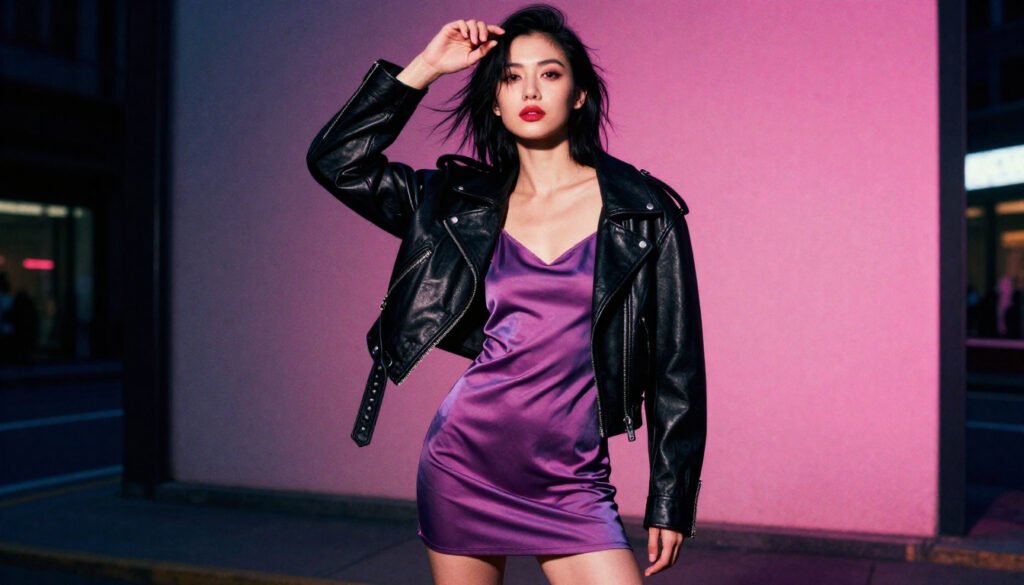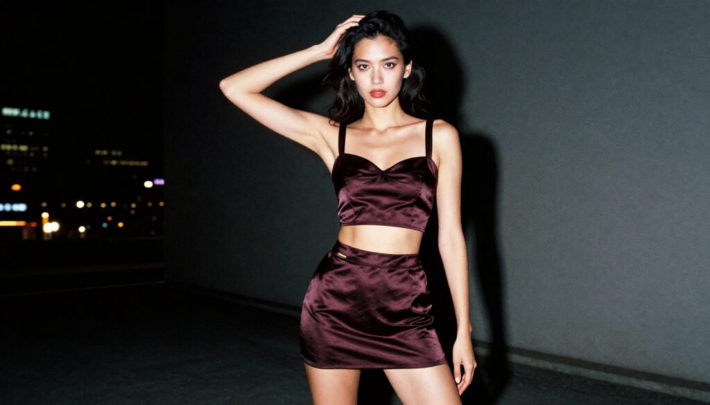 The key to styling shimmer is balance—let one high-shine piece lead while keeping the rest sleek and minimal. A metallic skirt with a fitted black top or a shimmering mini dress with clean heels creates a look that’s glamorous without feeling overdone. These outfits glow on camera and feel electric in real life, perfect for clubs, parties, and rooftop nights.