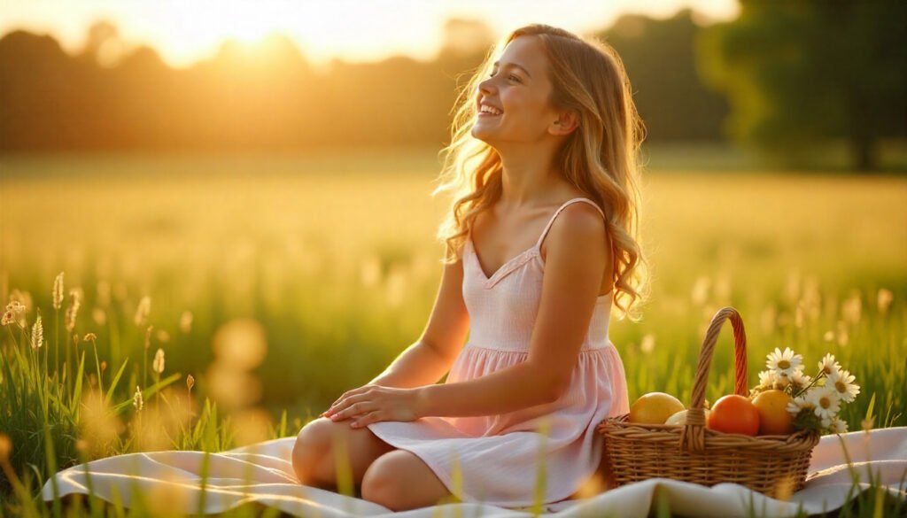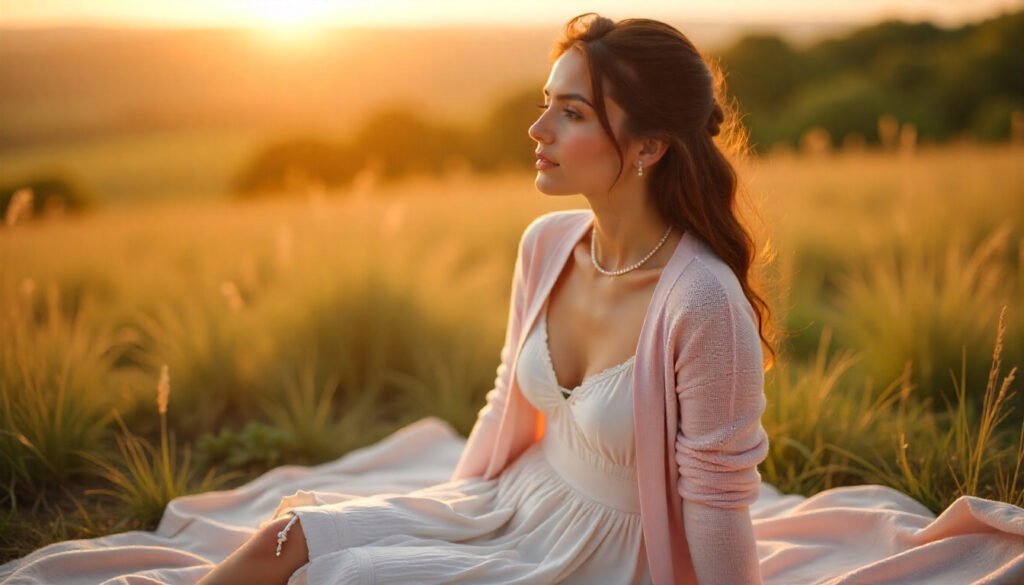 Evening picnics are perfect for subtle accessories that catch the last light: pearls, delicate chains, ribbon hair clips, or a soft floral headband. These details make photos feel more intimate, natural, and timeless. With your outfit, accessories, and gentle layers in harmony with the sunset, you’re creating the perfect soft, girly picnic aesthetic—warm, serene, and entirely Pinterest-ready.