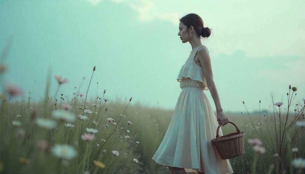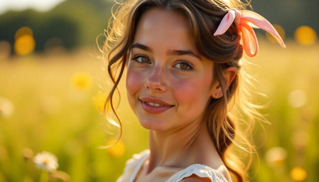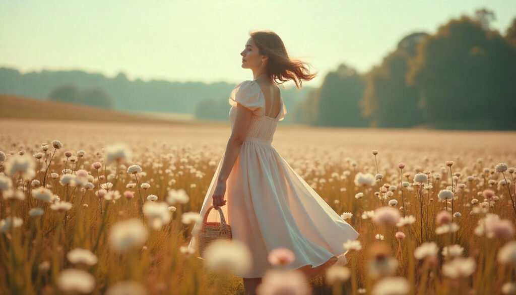 To complete the look, keep your accessories simple and charming. Think tiny pearl earrings, pastel hair ribbons, thin gold necklaces, and soft waves or braided hairstyles. The goal is to look naturally beautiful, like a girl glowing in her own little world—sweet, carefree, and deeply in tune with nature.