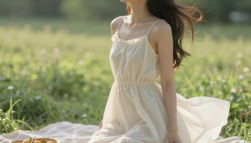 The secret to the perfect picnic outfit is choosing fabrics that keep you cool, soft, and effortlessly beautiful in the sunshine. In 2026, the trend leans heavily toward lightweight, breathable, nature-inspired fabrics—the kind that feel gentle on your skin and flow beautifully in outdoor settings. Think cotton, linen, chiffon, eyelet lace, and soft mesh. Picnic Outfits, These materials don’t cling, don’t overheat, and move with the wind in the most magical way.