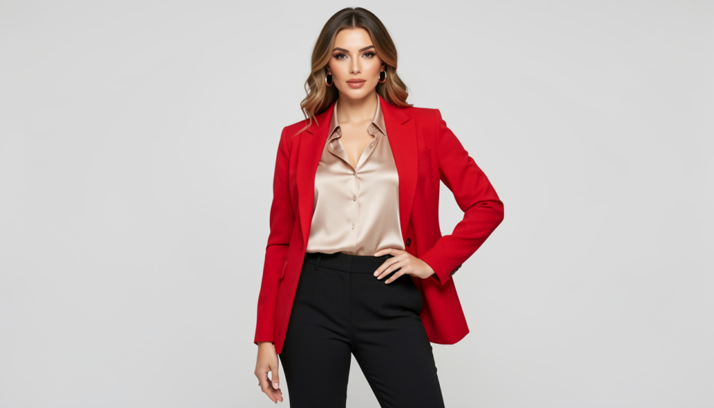 Red doesn’t have to stop at dresses or tops—red outerwear is one of the most underrated ways to command attention while staying effortlessly chic. In 2026, structured red blazers, tailored coats, cropped jackets, and longline trench styles are redefining confident fashion. A red layer instantly transforms even the simplest outfit into something bold, polished, and unforgettable.