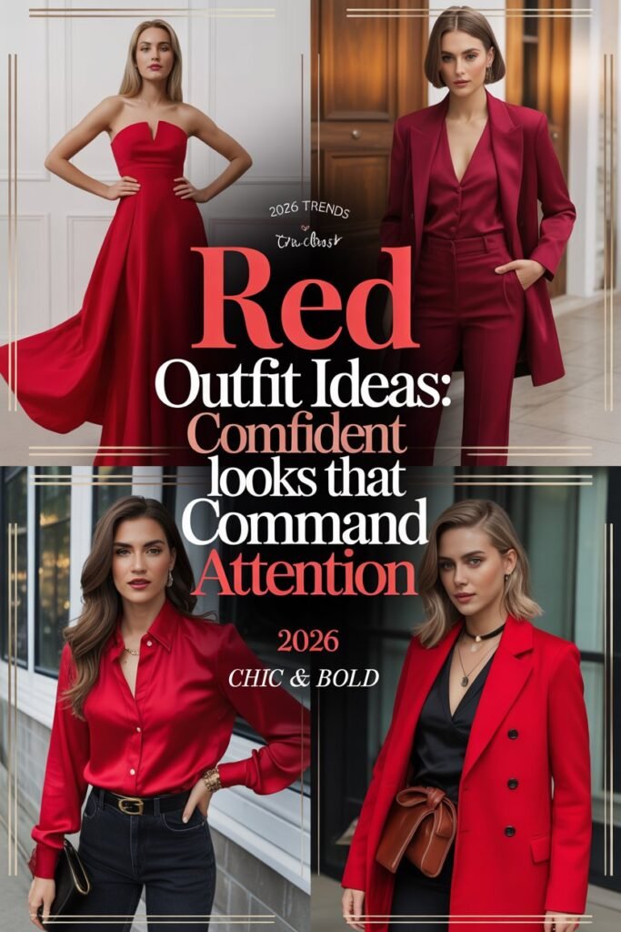 Red outfits in 2026 are the ultimate confidence boosters. From flowing red dresses and chic blouses to statement outerwear and bold accessories, red empowers women to express strength, elegance, and individuality. It’s a color that commands attention, tells a story, and leaves a lasting impression without saying a word.