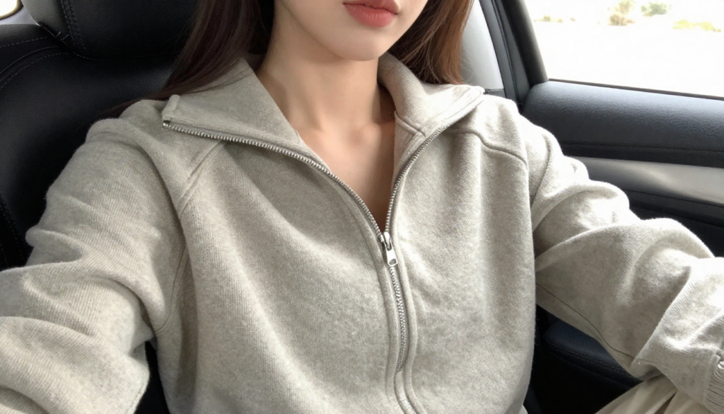 Neutral and earthy tones like beige, gray, cream, olive, and soft browns keep layered looks cute and effortless. Slightly oversized fits feel relaxed and cozy, while ribbed textures or knit fabrics add visual interest that looks amazing in photos. Pairing layers with stretchy leggings or joggers keeps the outfit car-ready and comfortable.