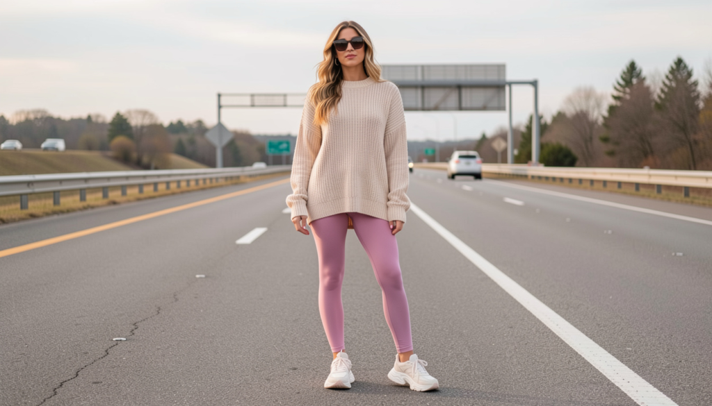 Cute, cozy, and car-ready outfits focus on soft fabrics, relaxed silhouettes, and easy layers that move with you. Think breathable tops, stretchy bottoms, oversized hoodies, and sneakers that support long hours on the road. These looks aren’t just practical—they reflect a laid-back, happy vibe that matches the spirit of adventure.