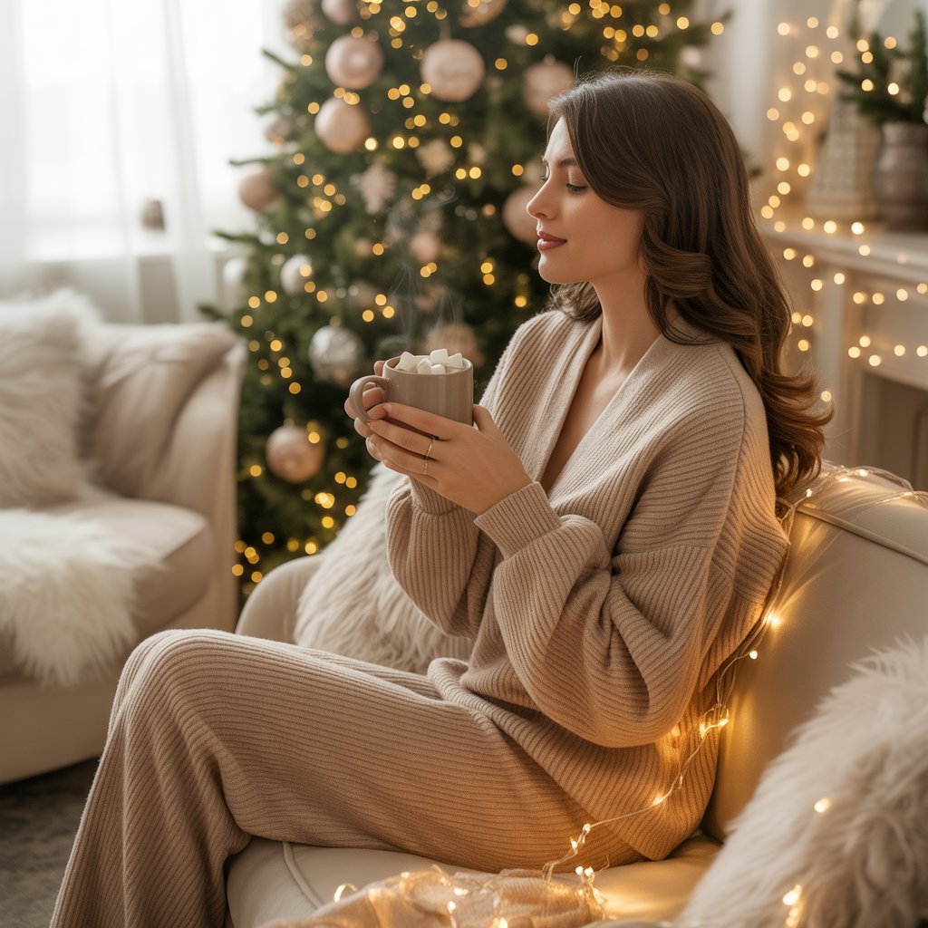 A quiet night in by the fireplace can be just as romantic as a night out. Picture this: soft Christmas music, hot cocoa, fairy lights twinkling, and you — looking effortlessly stunning in velvet or fleece loungewear.