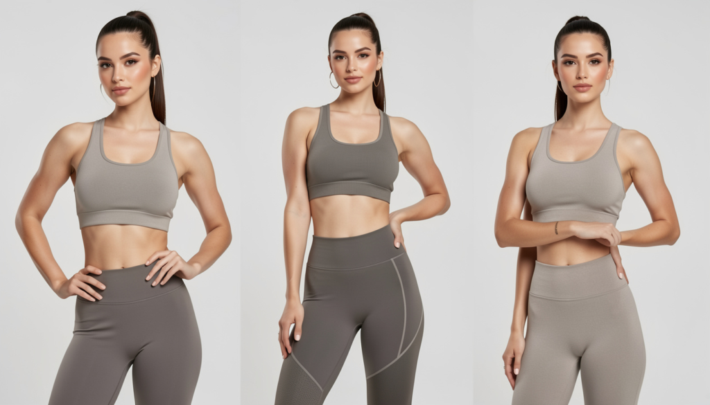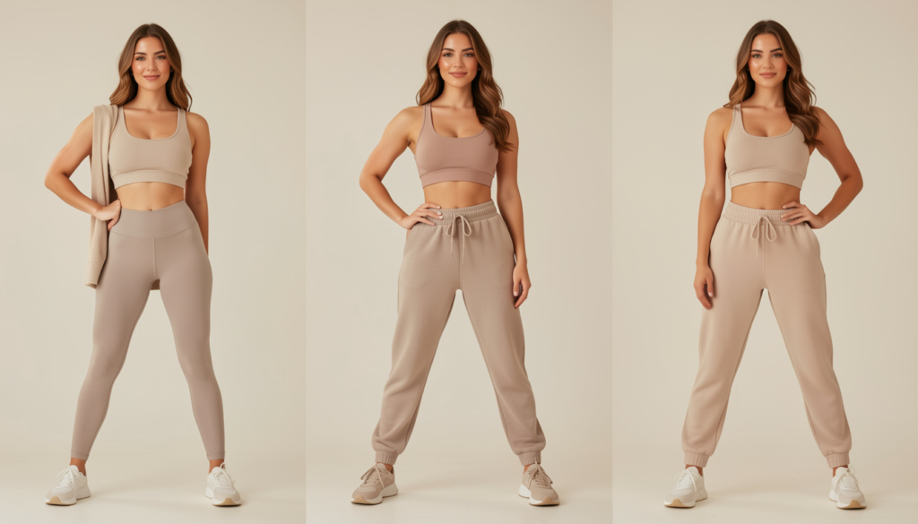 Neutral tones like black, gray, beige, olive, and soft pastels make athleisure sets feel elevated rather than casual. Minimal logos, smooth seams, and sculpting waistbands add a refined touch that allows these pieces to transition easily from workouts to everyday wear.