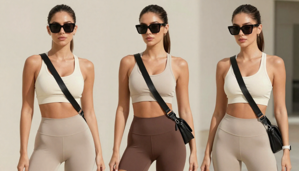 Accessories in sporty-chic outfits should feel intentional, lightweight, and effortlessly cool. The goal isn’t excess—it’s choosing a few statement pieces that elevate athletic wear into a fashion-forward look. Think sleek crossbody bags, structured mini backpacks, baseball caps, minimal jewelry, and oversized sunglasses.