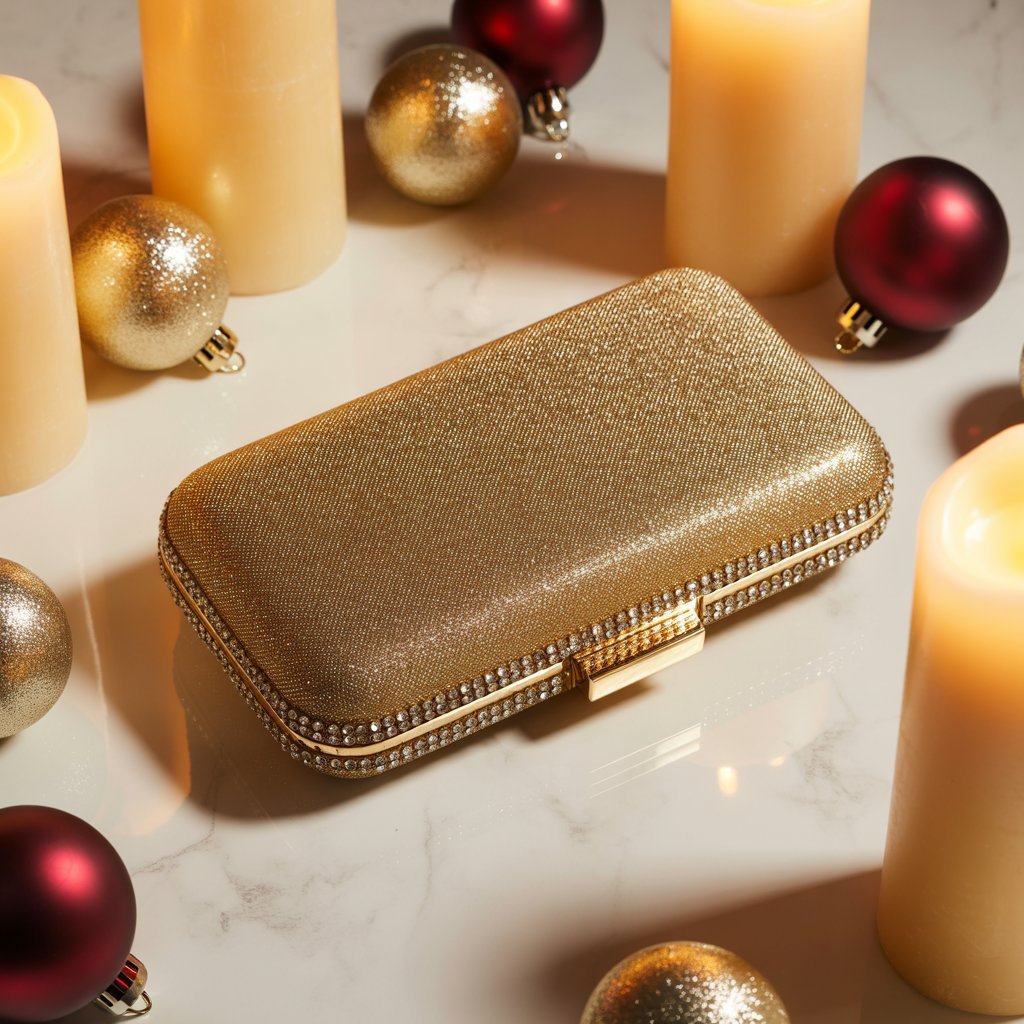 No Christmas look is complete without the perfect bag. In 2025, metallic clutches, rhinestone minis, and pearl-embellished purses are trending hard.