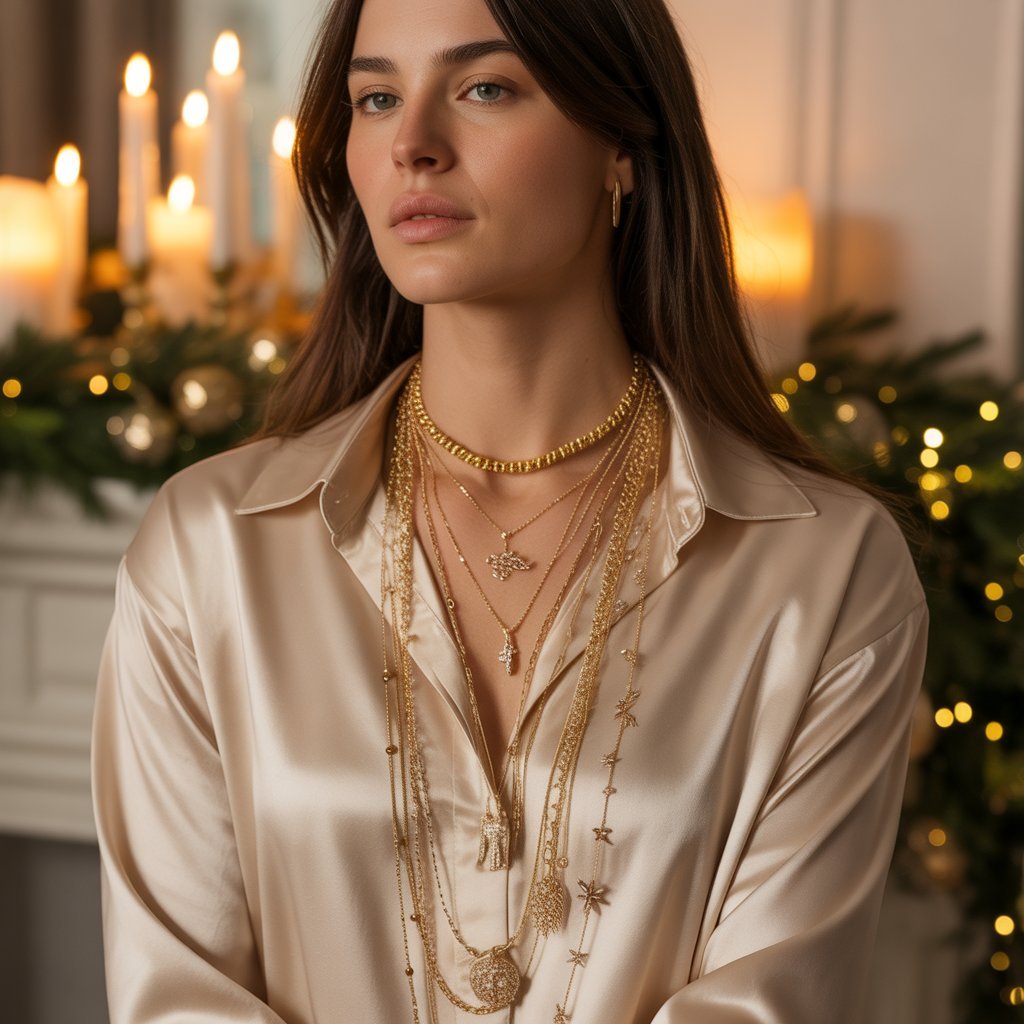 A statement necklace works beautifully with minimal outfits — pair it with a satin blouse, a high neckline, or even a simple knit dress for instant elegance.